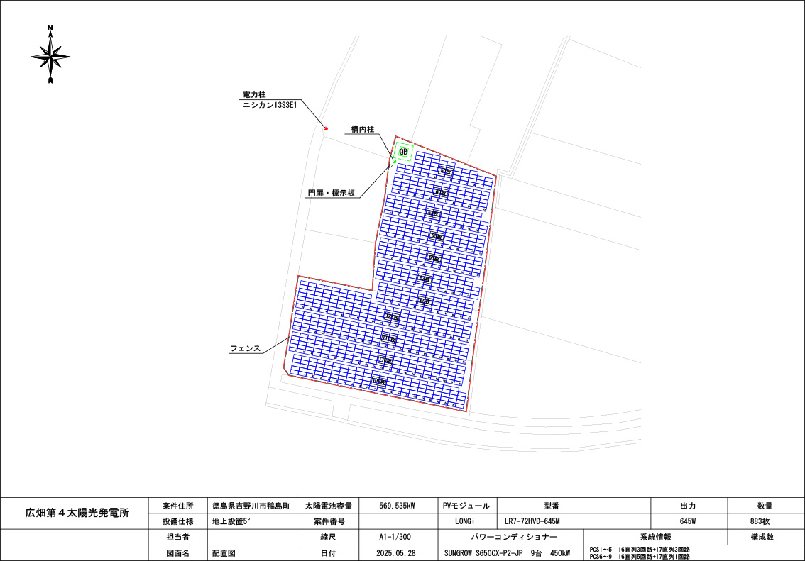 | モジュール | LR7-72HVD-645M × 883 枚 = 569.535 kW |