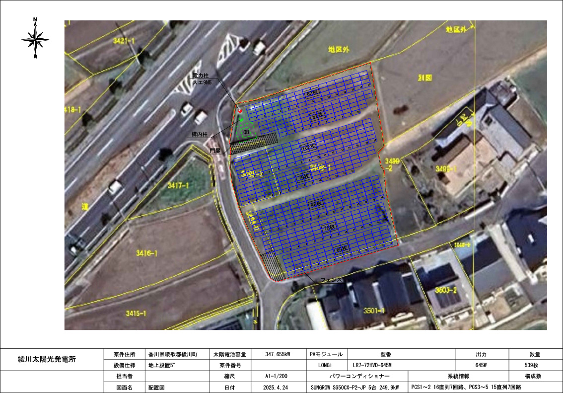| モジュール | LR7-72HVD-645M × 539 枚 = 347.655 kW |