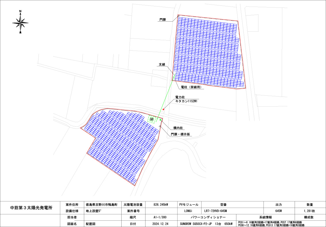 | モジュール | LR7-72HVD-645M × 1281 枚 = 826.245 kW |