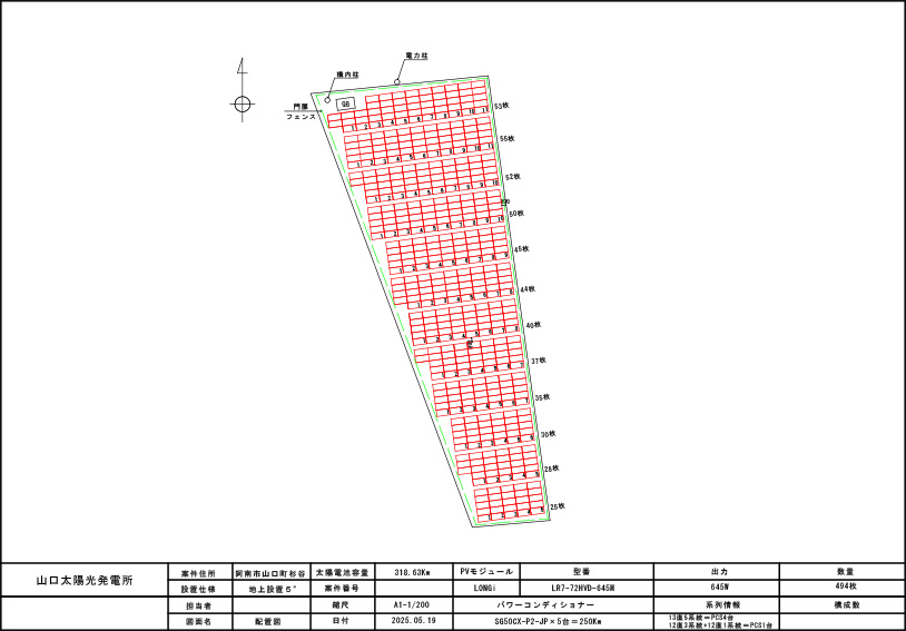 | モジュール | LR7-72HVD-645M × 494 枚 = 318.63 kW |