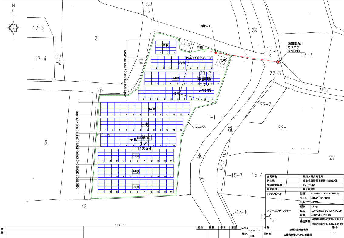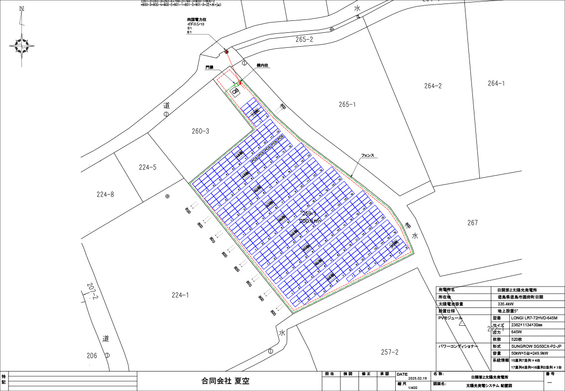 | モジュール | LR7-72HVD-645M × 411 枚 = 265.095 kW |